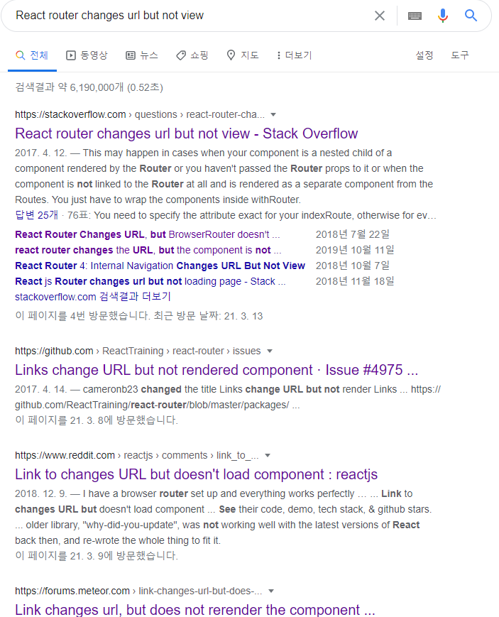 ๋ฆฌ์กํธ๋ก ํ์ฝ ํ์์ ํด๋ก ์ฝ๋ฉํ๋ ํฌํธํด๋ฆฌ์ค๋ฅผ ์ ์ํ๋ฉด์ ๊ณต๋ถ ์ค์, Link (react-router-dom)์ ํด๋ฆญํ๋ฉด url์ ๋ณ๊ฒฝ์ด ๋์ง๋ง ์ปดํฌ๋ํธ๊ฐ ์ ๋ฐ์ดํธ๊ฐ ๋์ง ์์์ ์ ๋๋ก ๊ธฐ๋ฅ์ด ์๋ํ์ง ์๋ ๋ฌธ์ ๋ฅผ ๊ฒช์๋ค.