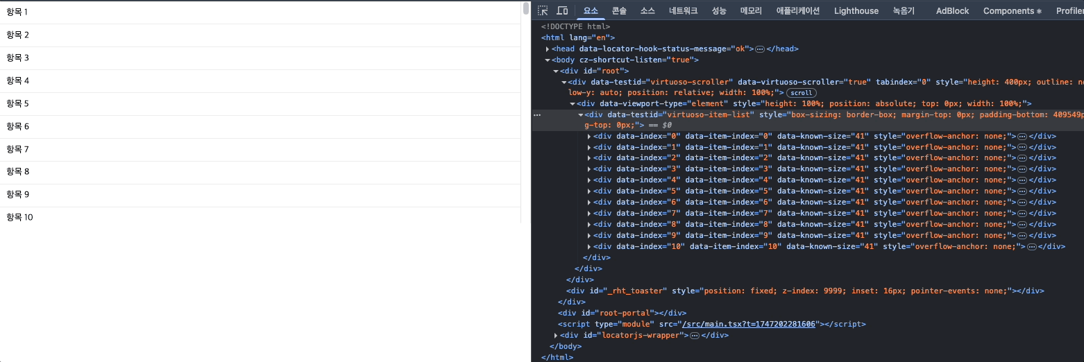 ์ฆ, ํ์ฌ ๋ณด์ด์ง ์๋ ์์ญ์ ๋ฐ์ดํฐ๊น์ง DOM ๋
