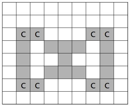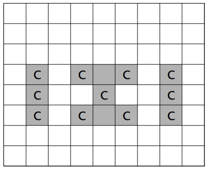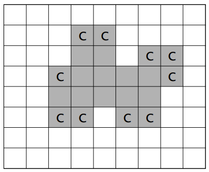 N×M์ ๋ชจ๋์ข ์ด ์์ ์์ฃผ ์์ ์น์ฆ๊ฐ <๊ทธ๋ฆผ 1>๊ณผ ๊ฐ์ด ํ์๋์ด ์๋ค. ๋จ, N ์ ์ธ๋ก ๊ฒฉ์์ ์์ด๊ณ , M ์ ๊ฐ๋ก ๊ฒฉ์์ ์์ด๋ค. ์ด ์น์ฆ๋ ๋๋ ๋ณด๊ด์ ํด์ผ๋ง ํ๋๋ฐ ์ค๋ด์จ๋์ ๋ด์ด๋์ผ๋ฉด ๊ณต๊ธฐ์ ์ ์ดํ์ฌ ์ฒ์ฒํ ๋ น๋๋ค. ๊ทธ๋ฐ๋ฐ ์ด๋ฌํ ๋ชจ๋์ข ์ด ๋ชจ์์ ์น์ฆ์์ ๊ฐ ์น์ฆ ๊ฒฉ์(์ ์ ์ ์ฌ๊ฐํ ๋ชจ์)์ 4๋ณ ์ค์์ ์ ์ด๋ 2๋ณ ์ด์์ด ์ค๋ด์จ๋์ ๊ณต๊ธฐ์ ์ ์ดํ ๊ฒ์ ์ ํํ ํ์๊ฐ๋ง์ ๋ น์ ์์ด์ ธ ๋ฒ๋ฆฐ๋ค. ๋ฐ๋ผ์ ์๋ <๊ทธ๋ฆผ 1> ๋ชจ์๊ณผ ๊ฐ์ ์น์ฆ(ํ์์ผ๋ก ํ์๋ ๋ถ๋ถ)๋ผ๋ฉด C๋ก ํ์๋ ๋ชจ๋ ์น์ฆ ๊ฒฉ์๋ ํ ์๊ฐ ํ์ ์ฌ๋ผ์ง๋ค.