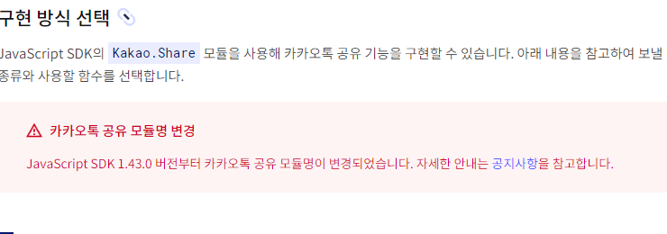 ์ด์ ๊ฒ์๊ธ ์ฝ๋์์๋ Kakao.Link๋ฅผ ์ฌ์ฉํ์์ง๋ง sdk๋ ์ ๋ฐ์ดํธ๋๋ฉด์ Kakao.Share๋ฅผ ํตํด ๊ตฌํํ์ต๋๋ค.