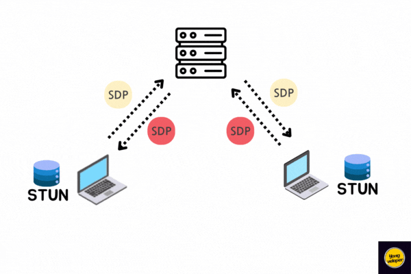 ์๋ก ๋ค๋ฅธ ๋คํธ์ํฌ ํ๊ฒฝ์ด๋ผ ๊ฐ์ ํ ์ํฉ์์ STUN ์๋ฒ๋ฅผ ํตํด ์ฐ๊ฒฐ ๊ฐ๋ฅํ ์ ๋ณด๋ฅผ ํ๋ํ๊ณ ์๊ทธ๋๋ง ์๋ฒ๋ฅผ ํตํด์ SDP๋ฅผ ์ฃผ๊ณ ๋ฐ๊ฒ ๋ฉ๋๋ค.