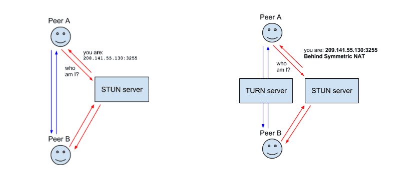 ์ฆ, STUN ์๋ฒ๋ก ๋จผ์ ์๋ํ๊ณ ์๋๋ฉด TURN ์๋ฒ๋ก ์๋ํ๊ฒ ๋ฉ๋๋ค.